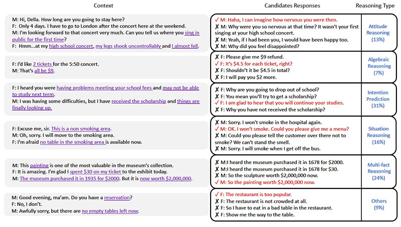 1. MuTual: A Dataset for Multi-Turn Dialogue Reasoning, by Leyang Cui, Yu Wu, Shujie Liu, Yue Zhang, Ming Zhou