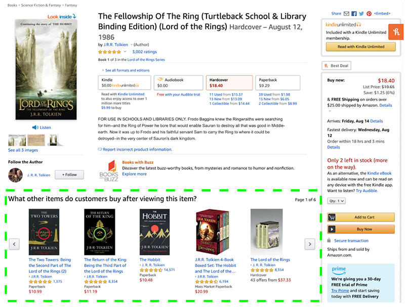 For example, Amazon has 5 results to display book recommendations.