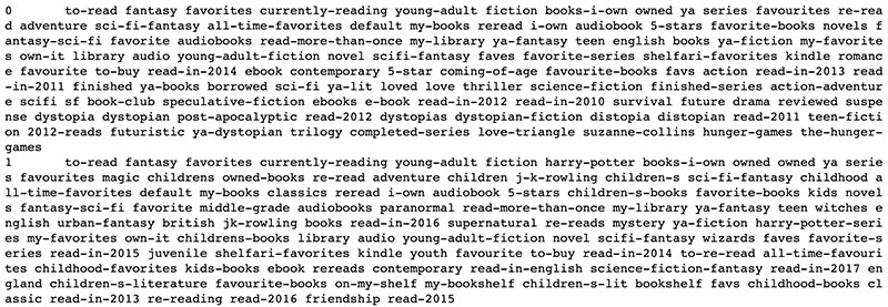 temp_df = books_with_tags.groupby('book_id')['tag_name'].apply(' '.join).reset_index()