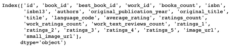 # Explore features books.columns