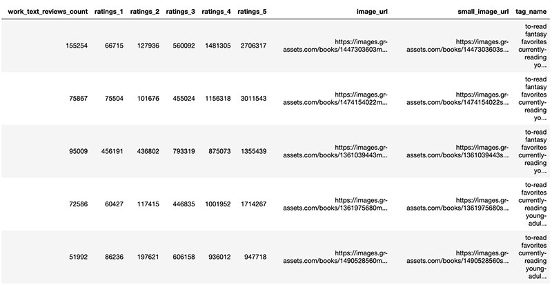 There are 10,000 books in this dataset and we want “book tags” as a key feature because it has rich data about the books to help us with recommendations. That data lives in different datasets so we have to data wrangle and piece the data puzzle together.