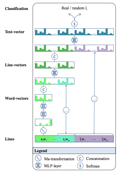 After mapping lines to high-dimensional vector space, DeepBeat leverages a Ranking SVM to pick the most relevant next lyric. Document ranking algorithms like PageRank use a single static ranking, but accuracy can be dramatically improved by combining multiple features via machine learning algorithms. Recurrent neural networks (RNNs) are typically used for textual predictions, but since rap lines are relatively short and equal in length, a feedforward network is a simpler and still suitable architecture for this problem.