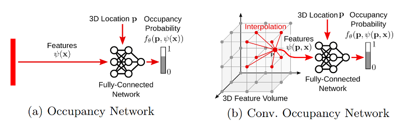 Convolutional Occupancy Networks uses convolutional encoders with implicit occupancy decoders to incorporates inductive biases and enabling structured reasoning in 3D space. Resulting in a more fine-grained implicit 3D reconstruction of single objects, with the ability to scale to large indoor scenes, and generalizes well from synthetic to real data.