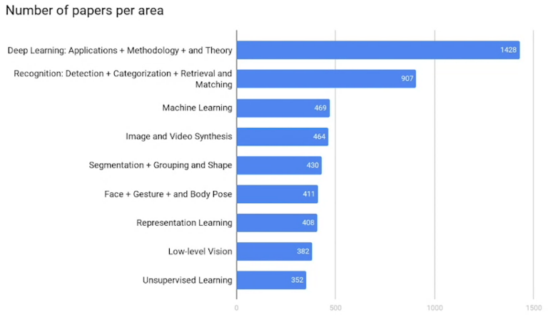 As expected, the majority of the accepted papers focus on topics related to deep learning, recognition, detection, and understanding. Similar to CVPR 2020, we see an increasing interest in growing areas such as label-efficient methods (e.g., unsupervised learning) and low-level vision.