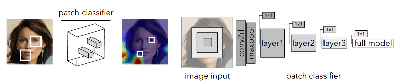 Since the global facial structure can vary among different generators and datasets, local patches of the generated images are more stereotyped and may share redundant artifacts. To this end, a fully-convolutional patch-based classifier is used to focus on local patches rather than global structure. The path level classifier can then be used to visualize and categorize the patches that are most indicative of real or fake images across various test datasets. Additionally, the generated image can be manipulated to exaggerate characteristic attributes of fake images.
