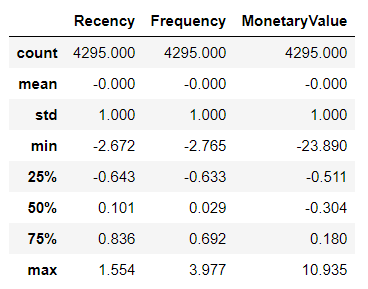 Now we are ready to run the data through K-means of 3, 4 and 5 clusters to segment our customers.