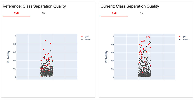 In this case, we would pay additional attention to the quality of model calibration as seen on the Class Separation plot.