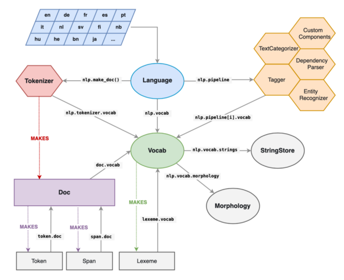 - Doc class has several useful attributes and methods. Significantly, you can create new operations on these objects as well as extend a class with new attributes (adding to the spaCy pipeline);