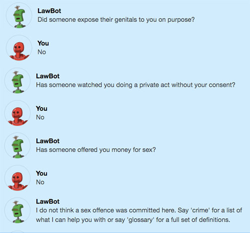 Do Not Pay’s Browder cautions that “the really big challenges are ones that require compassion and human judgment. If someone is to be granted bail, there is no set criteria. Bots work really well when there is a clear decision tree.” When bots address ambiguous issues, like rape or sexual harassment, even well-intentioned efforts like LawBot risk backfiring.