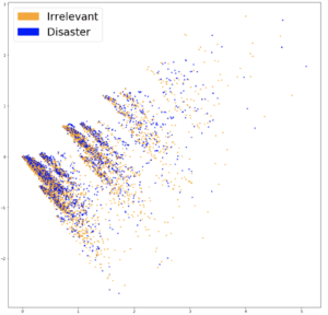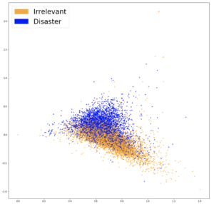 In the rest of this post, we will refer to tweets that are about disasters as “disaster”, and tweets about anything else as “irrelevant”.