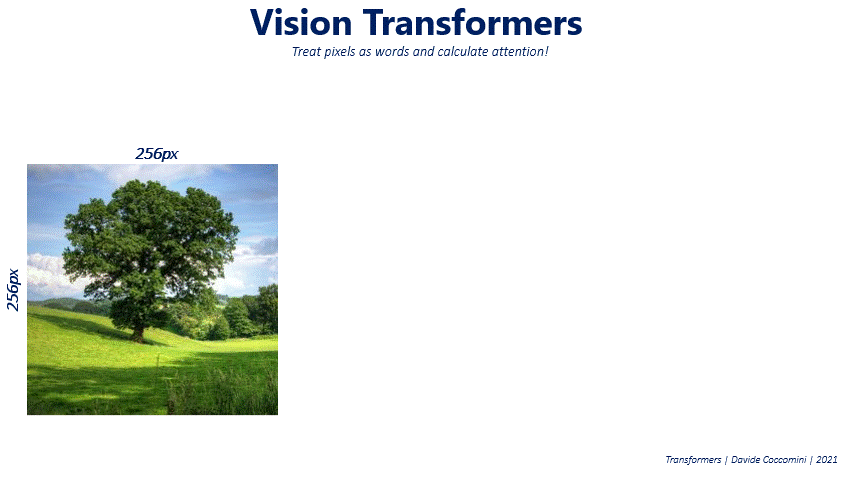 Arriving at this point in 2020, again Google researchers wondered, “but if Transformers have been found to be so effective in the field of Natural Language Processing, how will they perform with images?”. A bit like it was done with NLP, we start from the concept of attention but this time applied to images. Let’s try to understand it through an example.