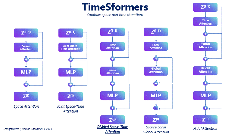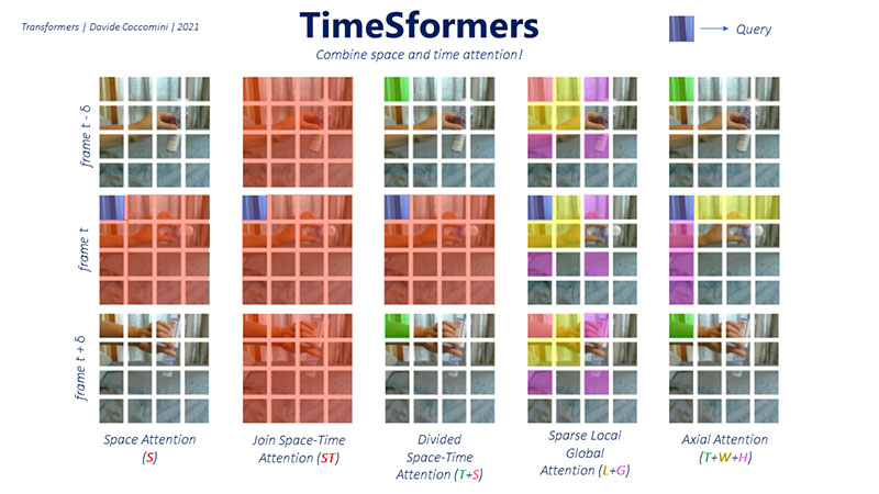 There is only one small detail that makes them different from Vision Transformers, you have to take into account not only space but also time. In this case in fact, when we go to calculate the attention we can not look at the frames as isolated images but we should find some form of attention that takes into account the variation that occurs between consecutive frames as it is central in the evaluation of a video.